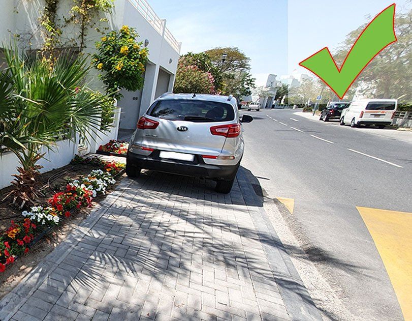 - لا يسمح بقيادة المركبات أو وقوفها في أي من المساحات الخضراء أو الحدائق المشتركة في أي وقت من الأوقات.