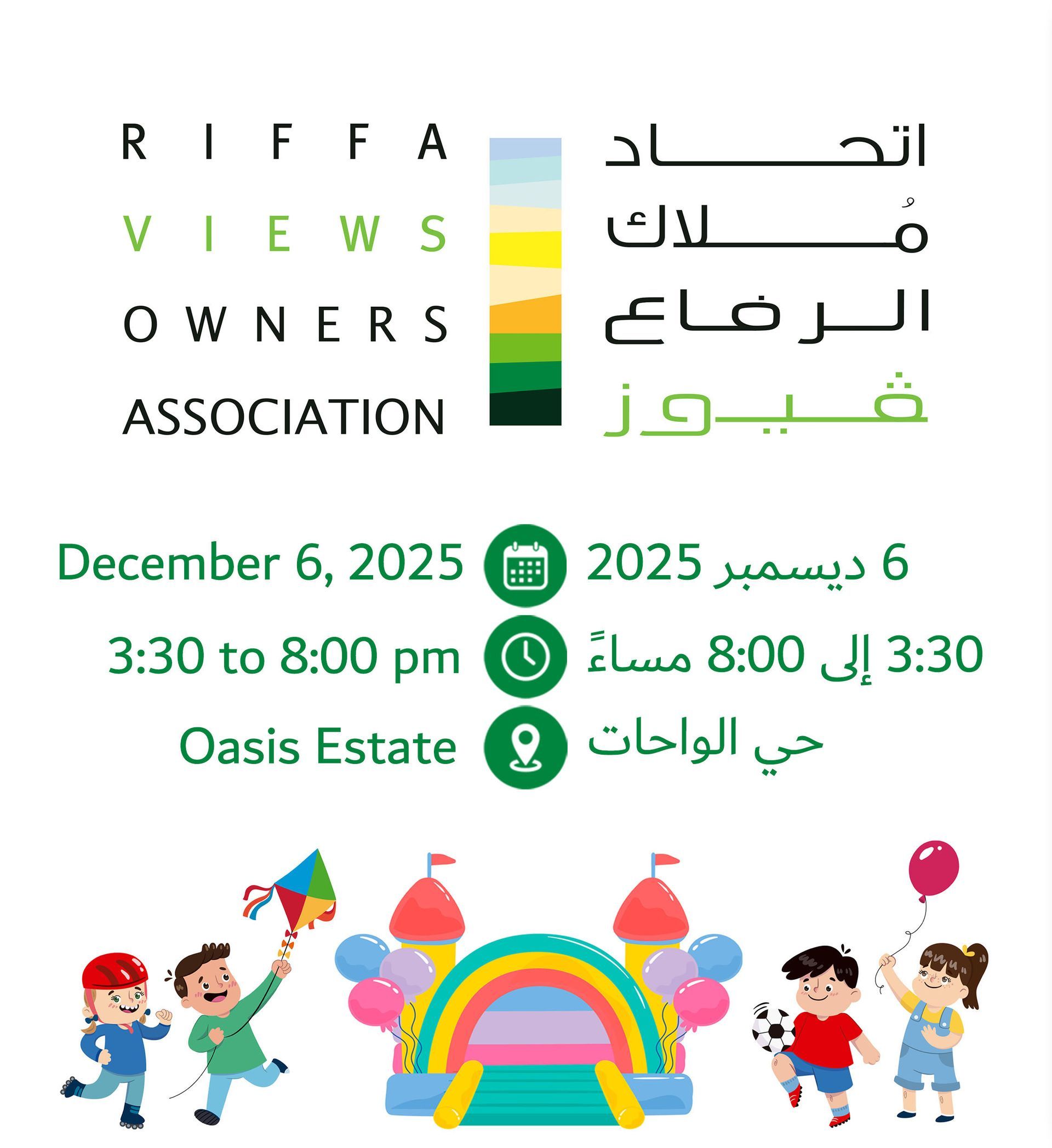 We invite you to join us, enjoy your time, and celebrate together. We also welcome you to bring your friends and relatives to spend delightful moments within the Riffa Views community.