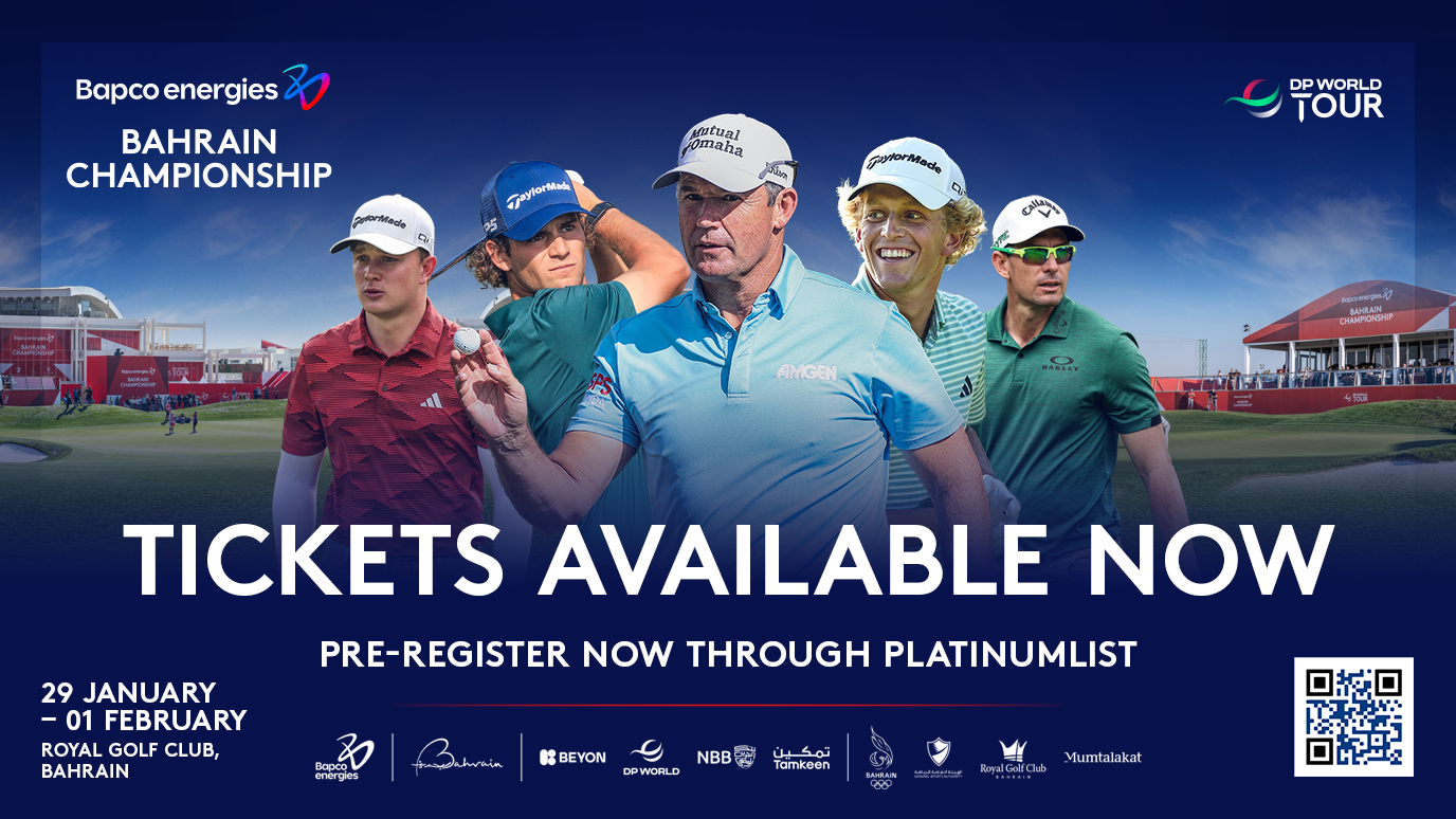 نفيدكم علمًا بأن النادي الملكي للجولف سيستضيف بطولة بابكو إنرجيز البحرين خلال الفترة من 29 يناير إلى 1 فبراير 2026، والتي تُقام تحت الرعاية السامية لحضرة صاحب الجلالة الملك حمد بن عيسى آل خليفة، ملك مملكة البحرين.