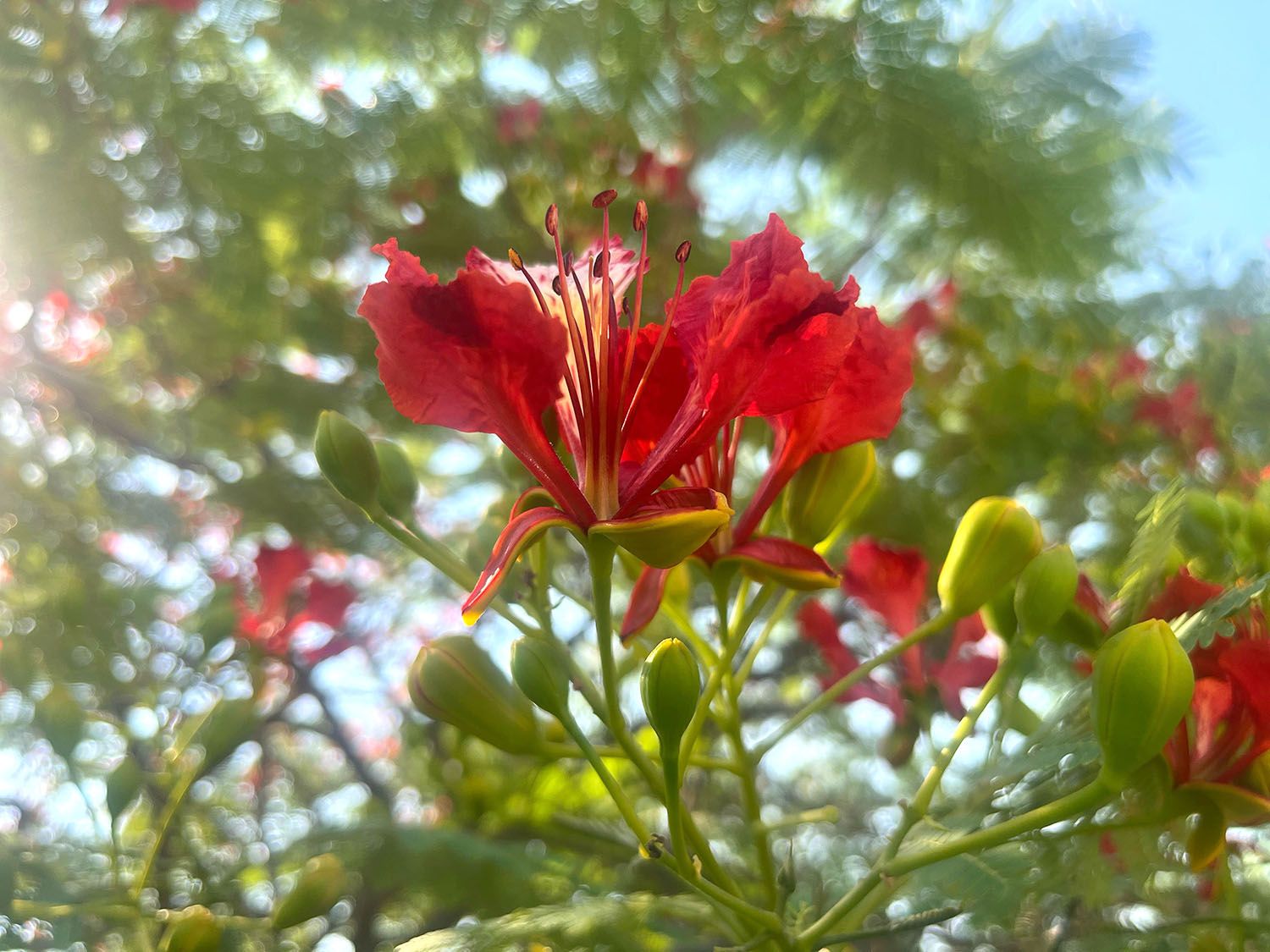 تُعرف بجمالها اللافت وأزهارها الزاهية بين الأحمر والبرتقالي، ما يجعلها من أجمل أشجار الزينة على الإطلاق. أوراقها ناعمة ومركبة، وتُضفي لمسة خضراء حتى خارج موسم الإزهار.